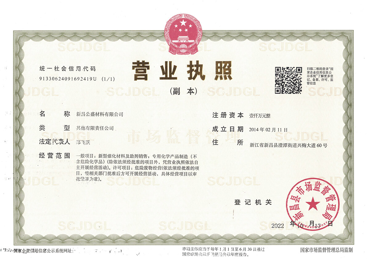 新昌公盛材料有限公司成立于2014年,坐落在江南大佛名城浙江新昌,地理位置優(yōu)越,交通便利,并配備有現(xiàn)代化的廠房和實(shí)驗(yàn)樓,總占地面積80畝。公司聚焦于研發(fā)和生產(chǎn)用于醫(yī)藥、農(nóng)藥、染料、材料等精細(xì)化工領(lǐng)域的貴金屬催化劑。目前主要從事鈀炭、鉑炭、釕炭等多項(xiàng)催化劑及醋酸鈀、DPPF二氯化鈀、雙三苯基膦二氯化鈀、四三苯基膦鈀、DBA鈀等均相催化劑的研發(fā)、生產(chǎn)、銷售以及失效鈀、失效鉑催化劑的回收再加工等業(yè)務(wù)。公司成立以來(lái),一直以提升客戶產(chǎn)品的競(jìng)爭(zhēng)力為經(jīng)營(yíng)宗旨,通過(guò)持續(xù)改進(jìn)客戶所用催化劑的性能,來(lái)提高客戶產(chǎn)品的收率,提高催化劑的套用次數(shù),提高失效催化劑的貴金屬回收率,來(lái)降低客戶產(chǎn)品中貴金屬催化劑的成本,進(jìn)而提升客戶產(chǎn)品的競(jìng)爭(zhēng)力。